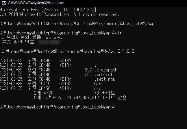 윈도우는 dir, 맥은 ls -al 명령어를 사용합니다.