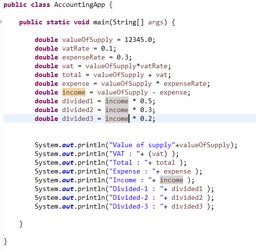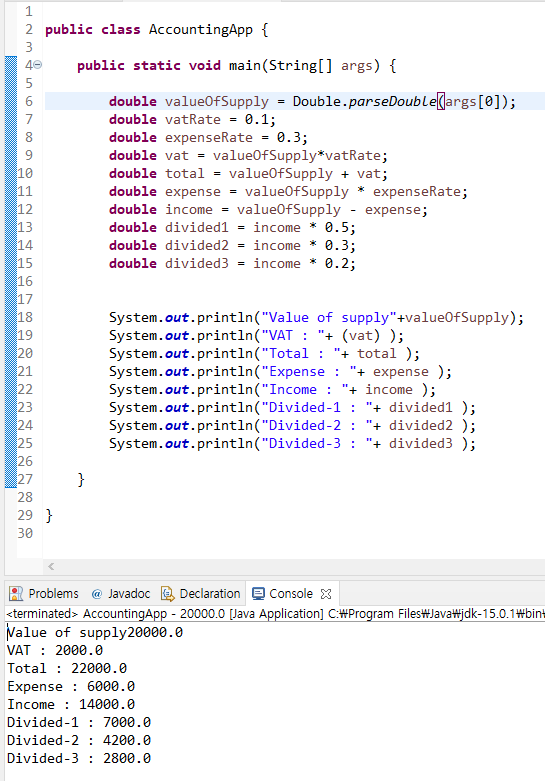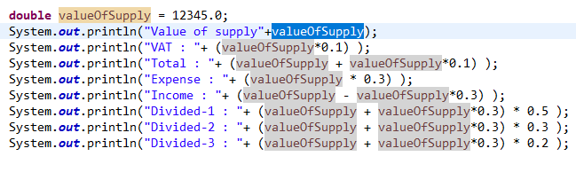 첫째줄에 double 형으로 valueOfSupply 변수를 선언해줬습니다.