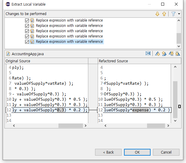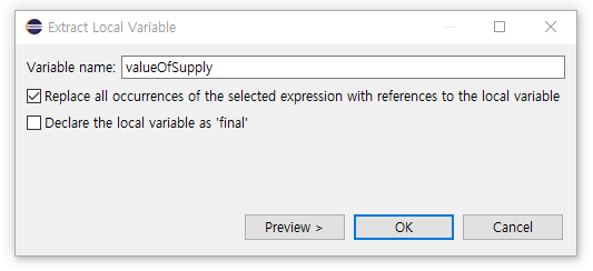 값을 마우스 우클릭 -> Refactor -> Extract Local Variable 을 클릭!