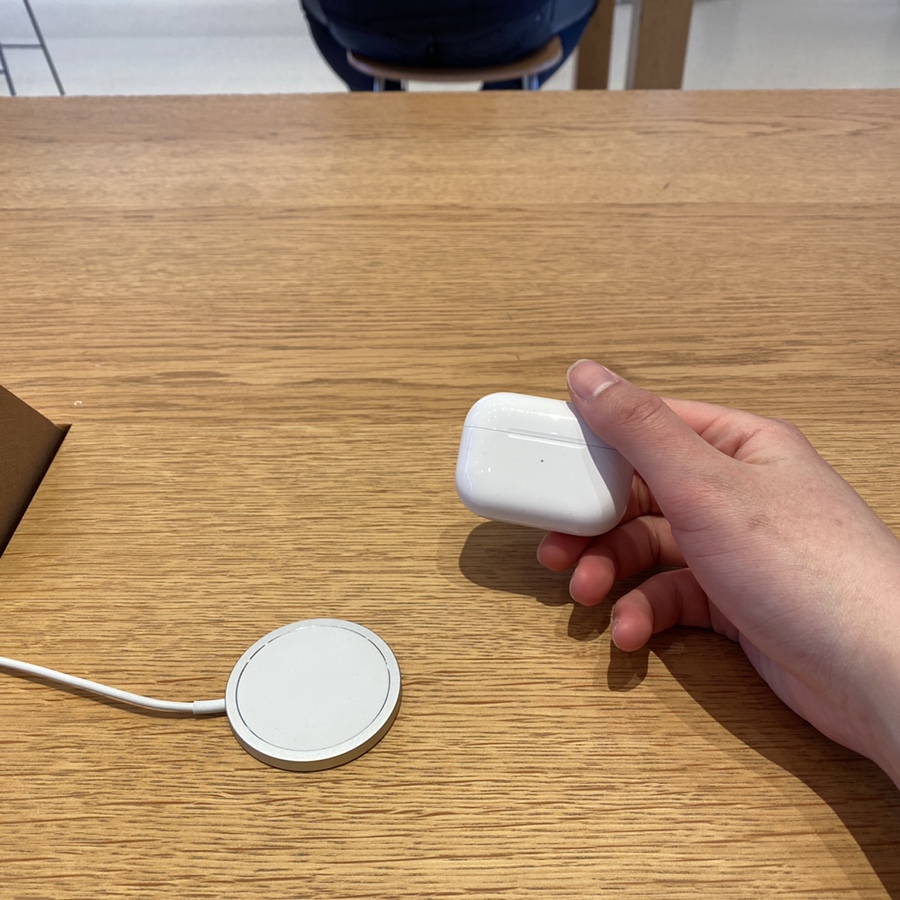 진짜 그 자리에서 에어팟 두개를 딱 꺼내오셔서 바로 언박싱하여 새로 넣어주셨어요!