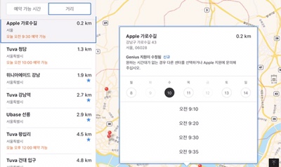 애플아이디로 로그인을 하게되면 현재 위치를 선택하여 가까운 위치의