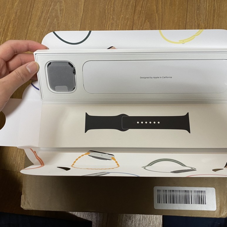 워치를 개봉하고 줄을 끼운 상태이고,