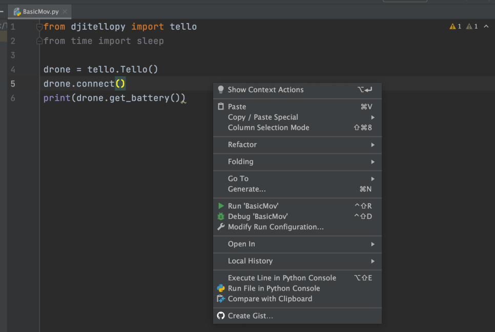 오늘은 직접 파이썬 파일을 만들어서 드론을 연결하고, 직접 코드를 작성하여 간단한 기능을 구현해보도록 하겠습니다. 그럼 시작하시죠!